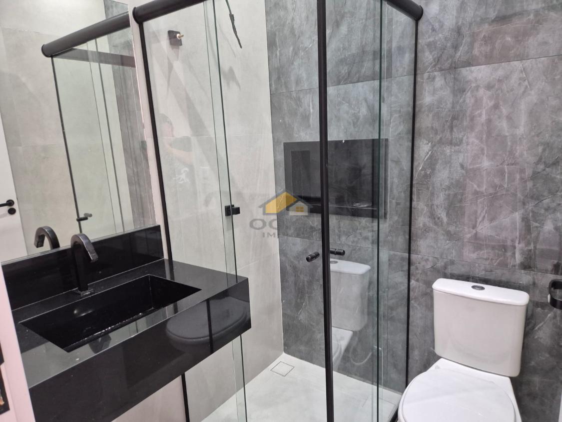 A cozinha americana é integrada e conta com balcão em pedra Preto Galaxy, acabamento presente também nos banheiros, soleiras e peitoris, trazendo sofisticação e padrão elevado. Os banheiros já possuem box e espelhos instalados, prontos para uso. A lavanderia é separada e equipada com persiana automática.