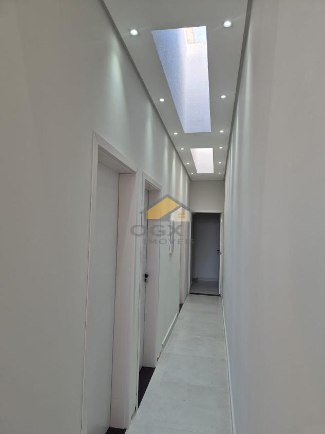 O imóvel possui 105 m² de área construída em um terreno de 154 m², muito bem distribuídos em 3 dormitórios, sendo 1 suíte, todos equipados com persianas blackout automáticas, garantindo conforto térmico e privacidade. A sala conta com pé-direito alto, proporcionando amplitude e iluminação natural, além de porta social em alumínio com fechadura digital, unindo segurança e modernidade.