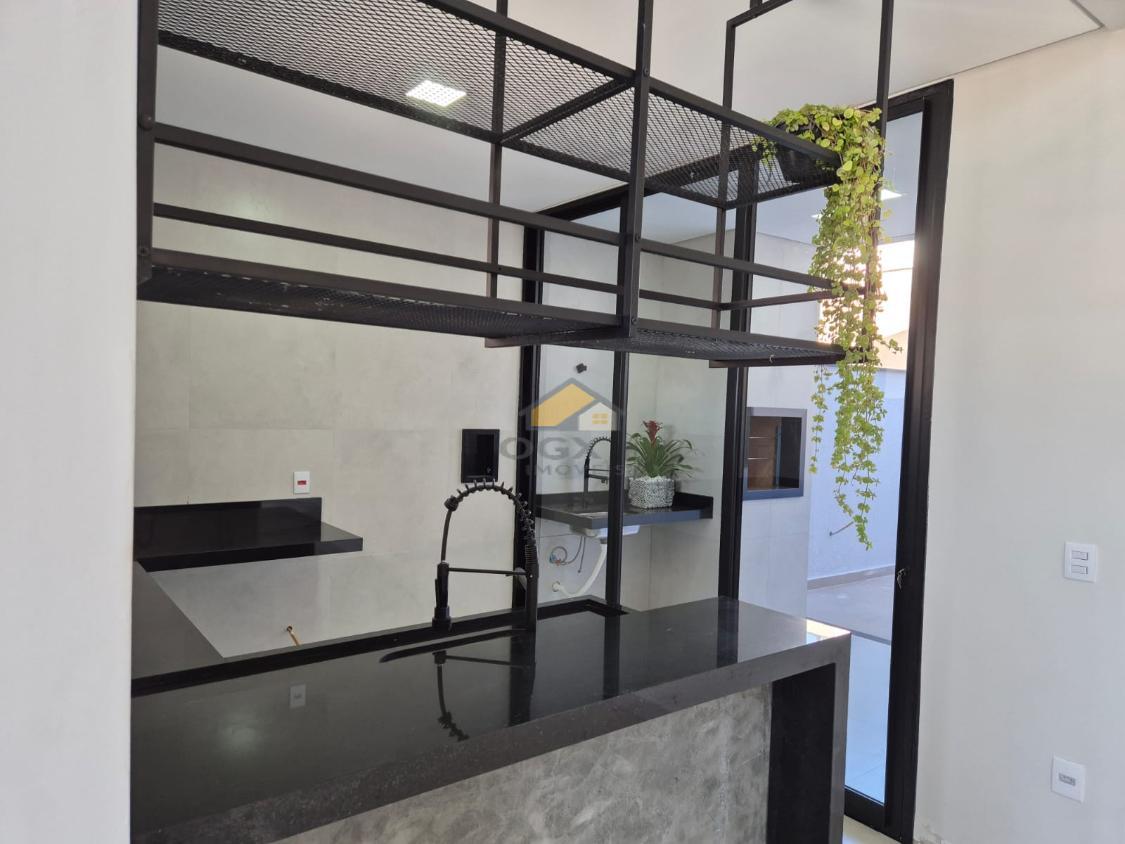 Na área externa, o imóvel oferece quintal aberto integrado à área gourmet, com churrasqueira e pia em pedra, ideal para momentos de lazer e convivência. A casa conta ainda com 1 vaga de garagem coberta, jardim e fachada com iluminação em LED, valorizando o projeto arquitetônico.
