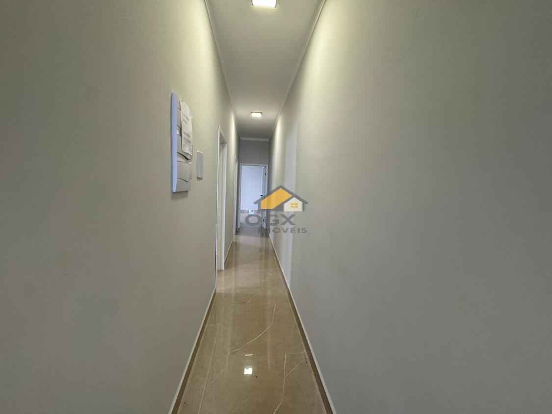 São 143 m² de área construída em um terreno de 200 m², distribuídos em 3 suítes, todos equipados com persianas blackout garantindo conforto e praticidade. A sala possui pé-direito alto, proporcionando amplitude e ótima iluminação natural, além de porta social alta em alumínio com fechadura eletrônica, agregando sofisticação e segurança.